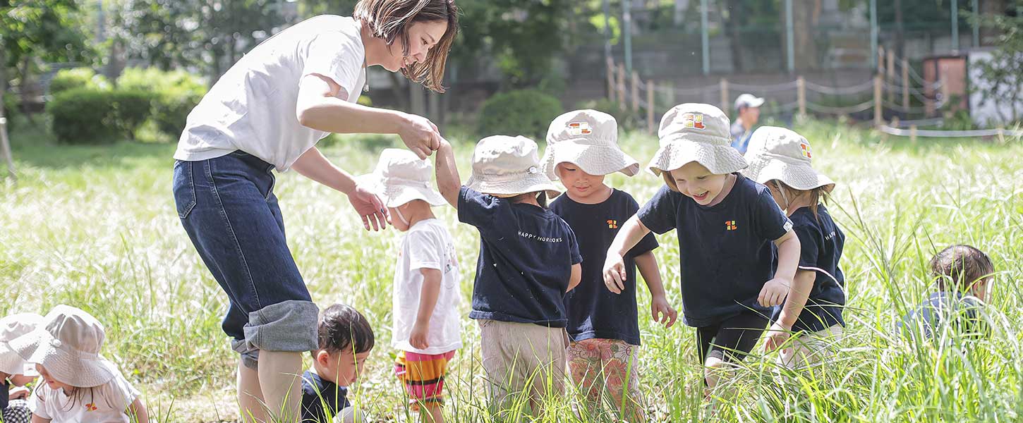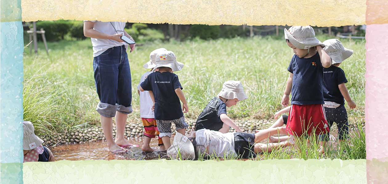 We go outside every day for outdoor play. There are many natural and spacious parks nearby, as well as playgrounds and temples that children can visit. We also take the school bus to parks like Komazawa Park, Rinshinomori Park, Tamagawa and Futako-Tamagawa.