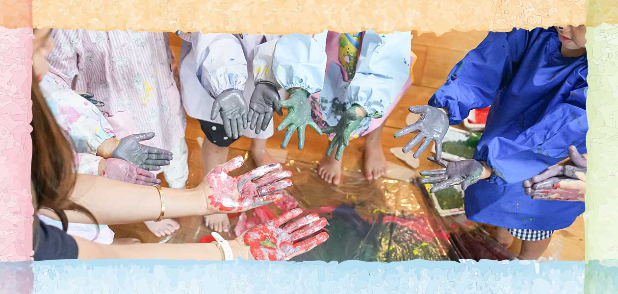 Through interactions with the teachers, “art play” is born. For example, if a child shares a story about visiting a mountain over the weekend, the teacher might ask, “What kind of trees were there?”